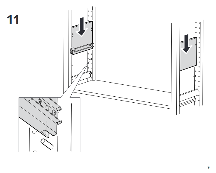 Glissez les plaquettes verticalement dans les montants jusqu'à ce que les reposent sur les