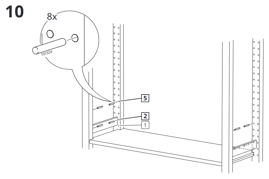 Insert the s in the larger holes on the side panels.